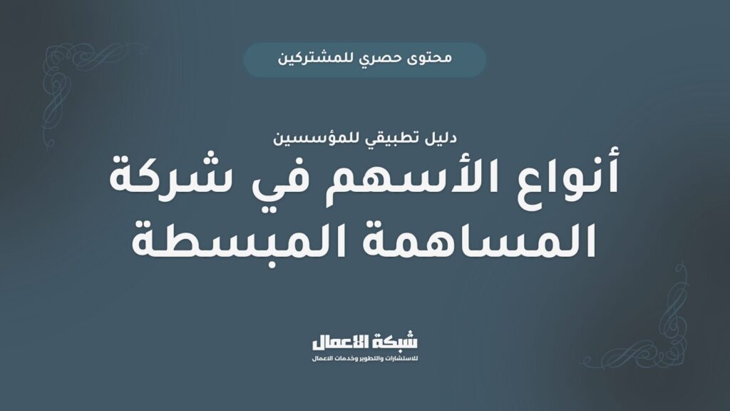 أنواع الأسهم في شركة المساهمة المبسطة ليست مجرد تصنيفات قانونية، بل أدوات عملية لتنظيم الملكية والسيطرة والعوائد داخل الشركة.